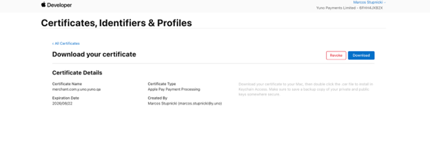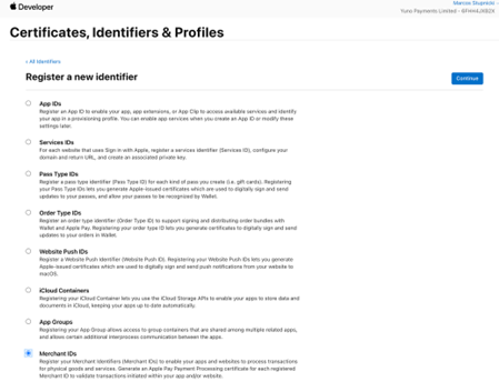 CertificateSigningRequestMerchantIdentityCertificate.certSigningRequest) - Click Continue