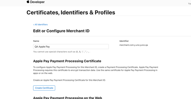- In Apple Pay Merchant Identity Certificate click Create Certificate